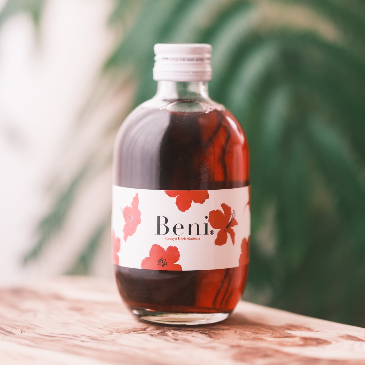 すっきりと爽やかな酸味と甘味が口から身体へと広がります。紅く美しい色合いは、自然素材であることにこだわったフラワーエキスそのもの。Beniは無着色・無香料です。カクテルやビールなどのアルコールのフレーバー、スイーツや料理を彩る食材としてもオススメです。透明感のある美しいガラスのパッケージデザインは、インテリアとしても楽しめます。