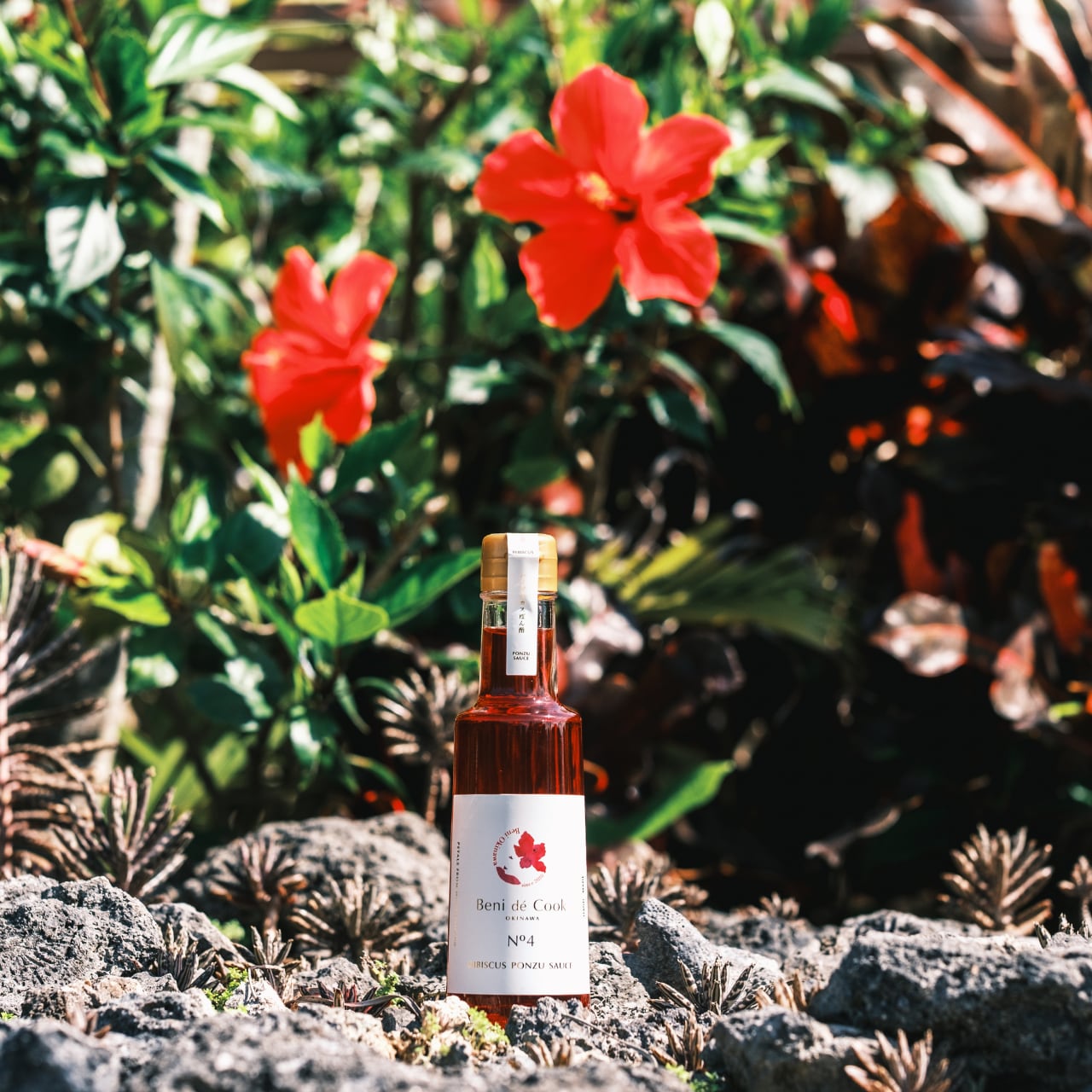 美と健康に優れたハイビスカスポン酢は、キレイな紅色が大変美しく普段使いからギフトまで幅広くお使い頂けます。しゃぶしゃぶやサラダにも相性が良く、甘みを引き立てる程良い酸味のポン酢です。沖縄在来ハイビスカス「あかばなぁ」の希少な花びらを丁寧に手摘みし、手間をかけて花びらの天然色素のみを用いて作りました。無添加・天然花弁色素使用でカラダに嬉しいポン酢です。